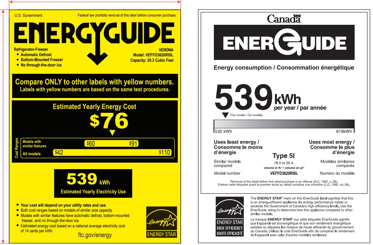 Verona VEFFD3620RI 36″ French Door Refrigerator with 20.3 cu. ft. Capacity, Recessed Handle